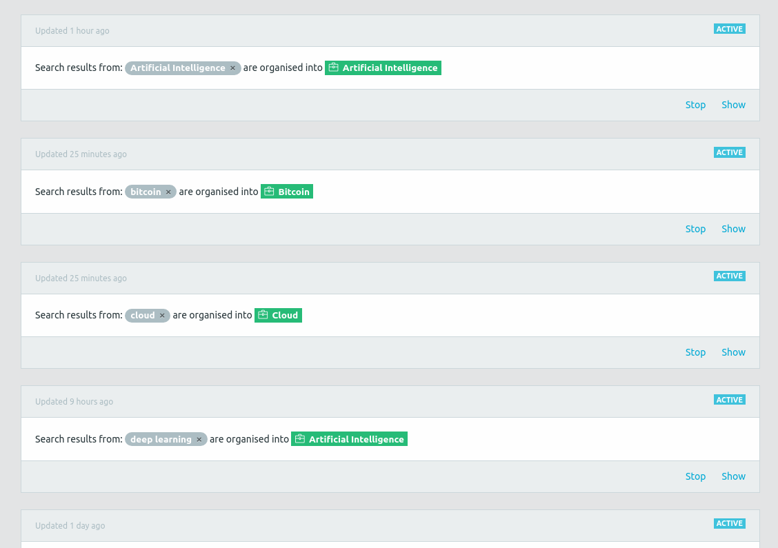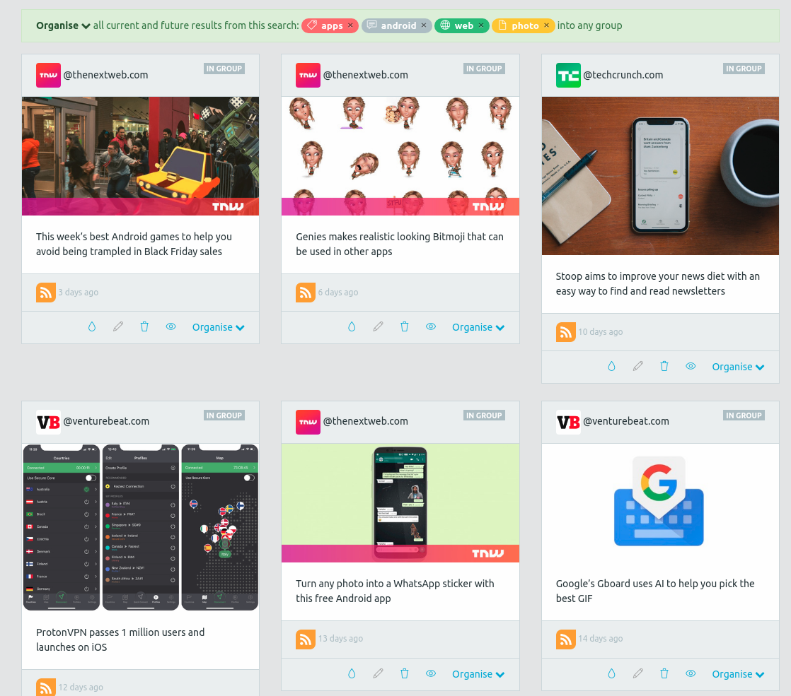 Fetch fresh content when it is published at your favourite sites, blogs, news portals and start building up 360° views on your areas of interest.